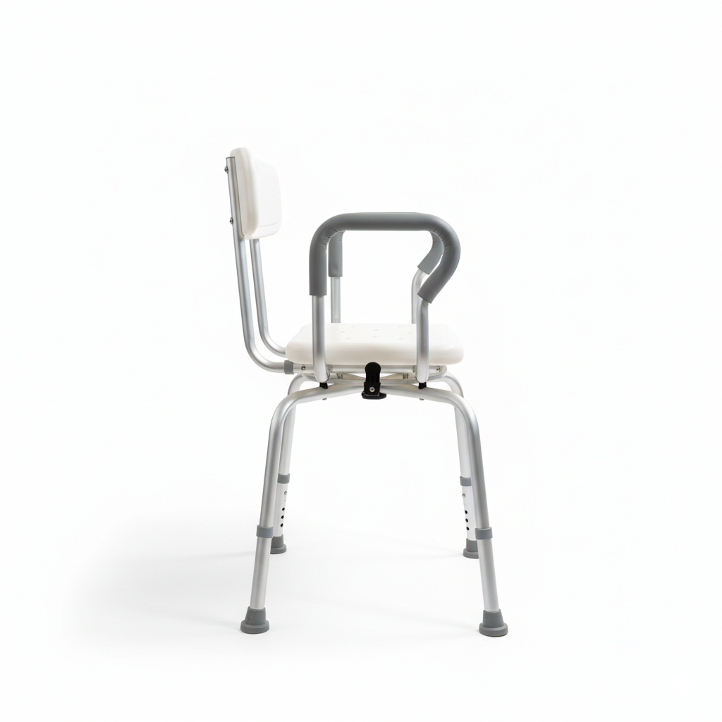 Make every shower safer and more comfortable with the Kerae Medical Swivel Bath Chair with Armrest (KM3783L) — trusted support for your daily care routine.