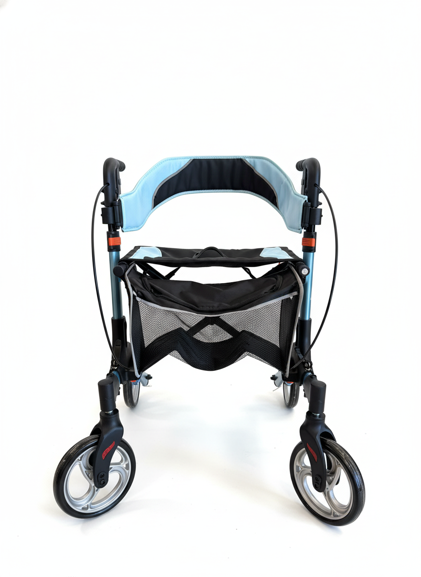 Experience smooth, stable mobility with the Kerae Aluminum Rollator. Its lightweight yet sturdy aluminum frame is designed for everyday use, offering excellent maneuverability indoors and outdoors. The ergonomic handles and responsive braking system provide added safety, while the cushioned seat and backrest offer comfort during rests. A spacious storage basket underneath makes it easy to carry personal items on the go.