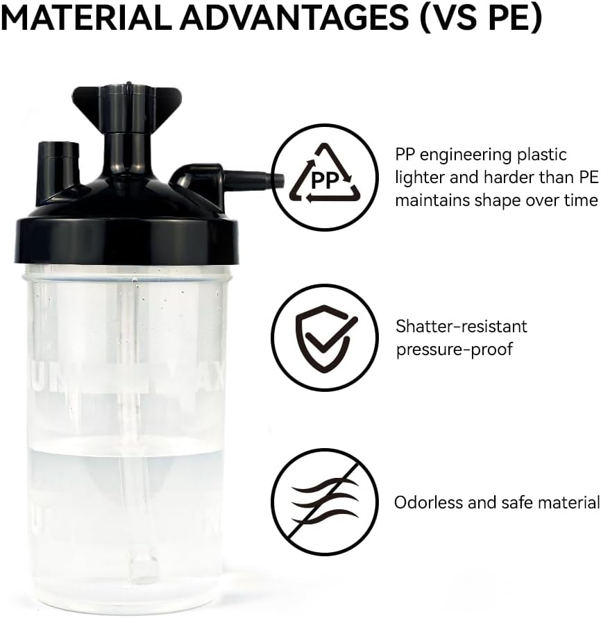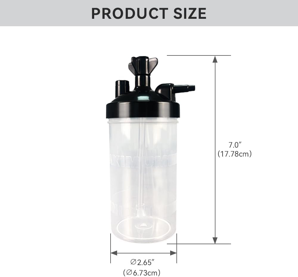 With universal compatibility, it connects seamlessly to most concentrators and tubing systems. Whether in a clinical setting or at home, this bottle is an essential add-on for safe, effective oxygen delivery.