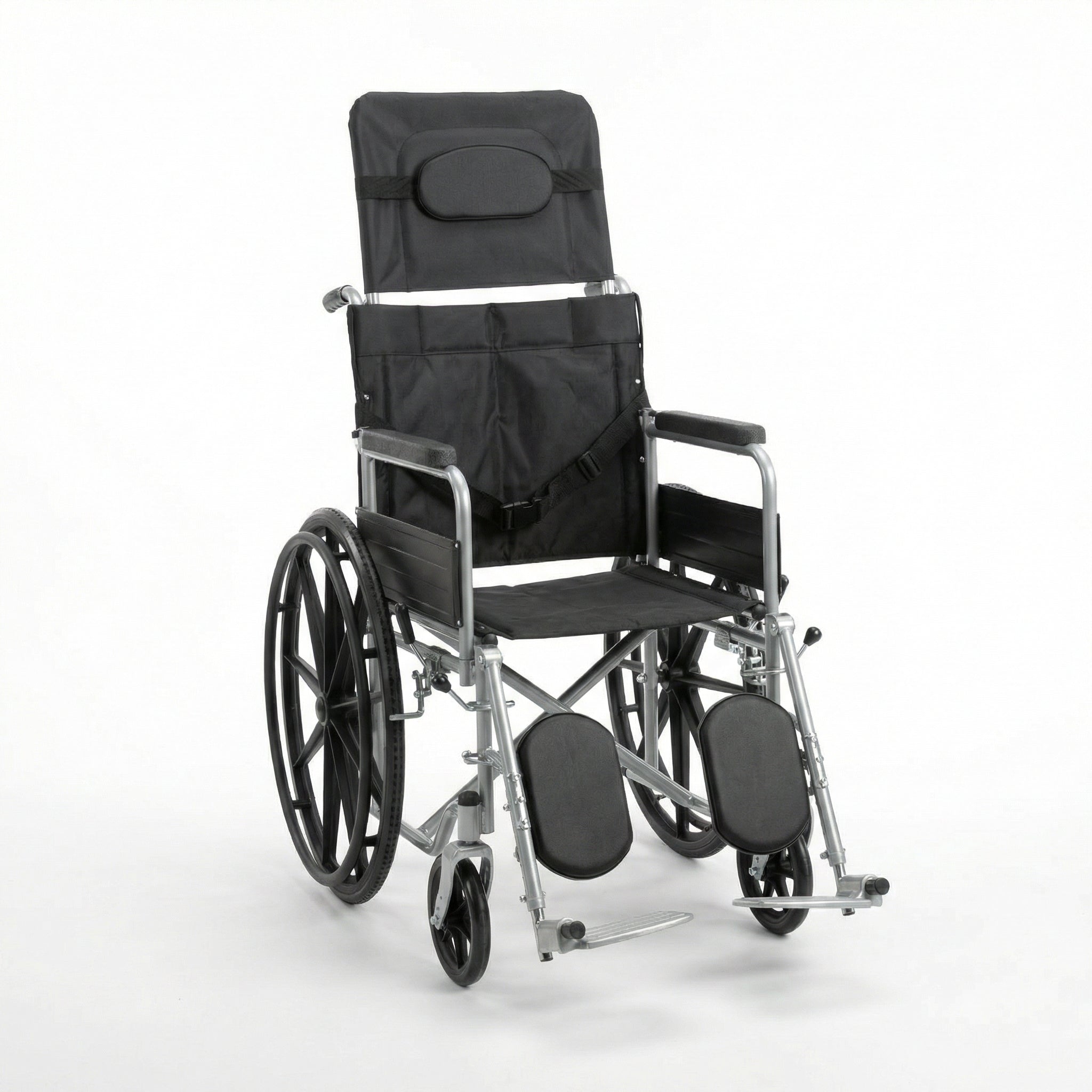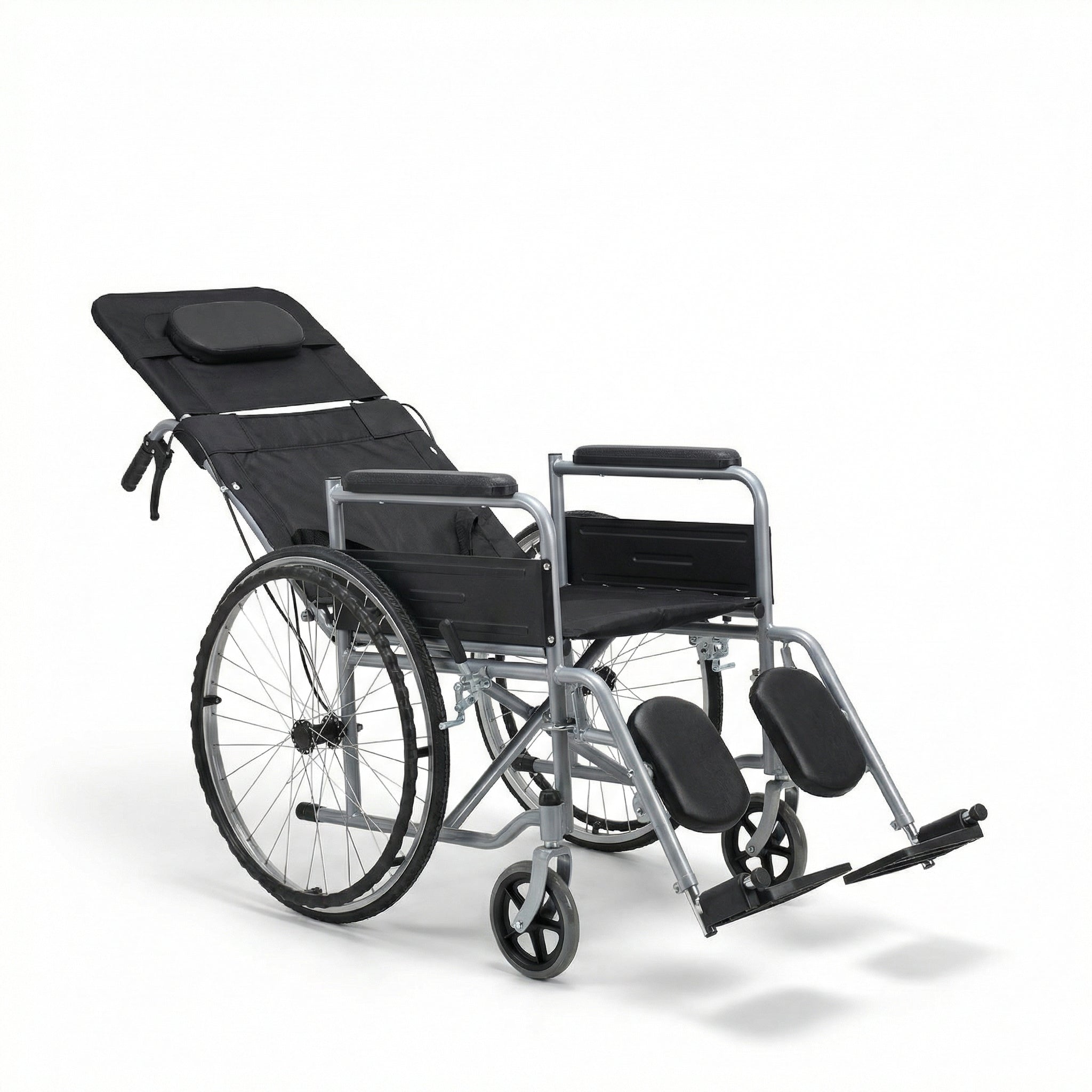 The XL-L08 Reclining High-Back Manual Wheelchair is designed to provide enhanced comfort, posture support, and flexibility for users who need extended sitting or rest positions. Featuring an adjustable reclining backrest with a high-back attachment, this wheelchair allows caregivers to easily adjust the seating angle for improved comfort and pressure relief.