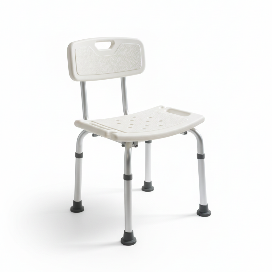 Stay safe and comfortable in the shower with the Kerae Medical Shower Chair. Designed with a wide contoured seat, supportive backrest, and height-adjustable legs, this chair provides stability and peace of mind for individuals with limited mobility. Non-slip rubber feet and a durable aluminum frame ensure secure placement, while the tool-free assembly makes setup quick and easy. Ideal for elderly users, post-surgery recovery, or anyone needing extra support during bathing.