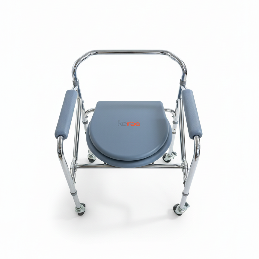 Kerae Medical’s Steel Bedside Commode Chair is built with a durable chrome-plated steel frame for long-lasting stability and easy maintenance. Designed for both bedside and bathroom use, it provides reliable support for individuals with limited mobility. The cushioned seat and armrests offer added comfort, while the integrated commode bucket allows for convenient use without transferring to a toilet.
