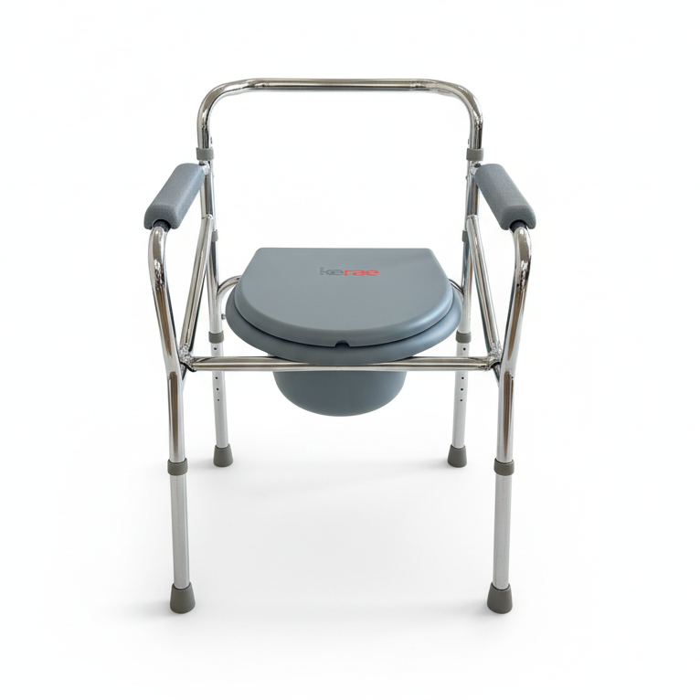 The Kerae Steel Bedside Commode Chair offers sturdy, practical support for individuals who need assistance with toileting. Built with a durable steel frame and a polished finish, this commode is designed for both stability and easy maintenance. Its adjustable legs allow for height customization, while padded armrests provide added comfort and support during use. The removable bucket and lid make cleaning quick and hygienic, making it ideal for home or facility use.